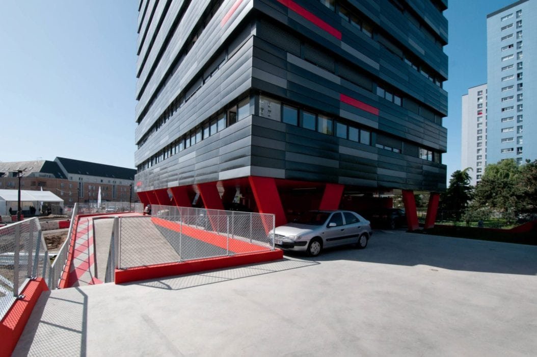 Livrée le mois dernier, l’ESCP Business School (anciennement Novancia) accueillera à la prochaine rentrée près de 1 500 élèves à Paris. Réalisé par le cabinet Architecture-Studio à qui l’on doit le parlement européen ou la prochaine médiathèque de Saint-Malo, l’école se situe dans la rue Armand Moisant dans le 15 arrondissement de Paris à proximité de la gare Montparnasse. Elle abrite des salles de cours, des bureaux, 3 amphithéâtres, un centre de ressources, un studio d’enregistrement, des espaces de restauration et un auditorium de 260 places. Un parking de 94 places s’installe sur les deux niveaux du sous-sol.