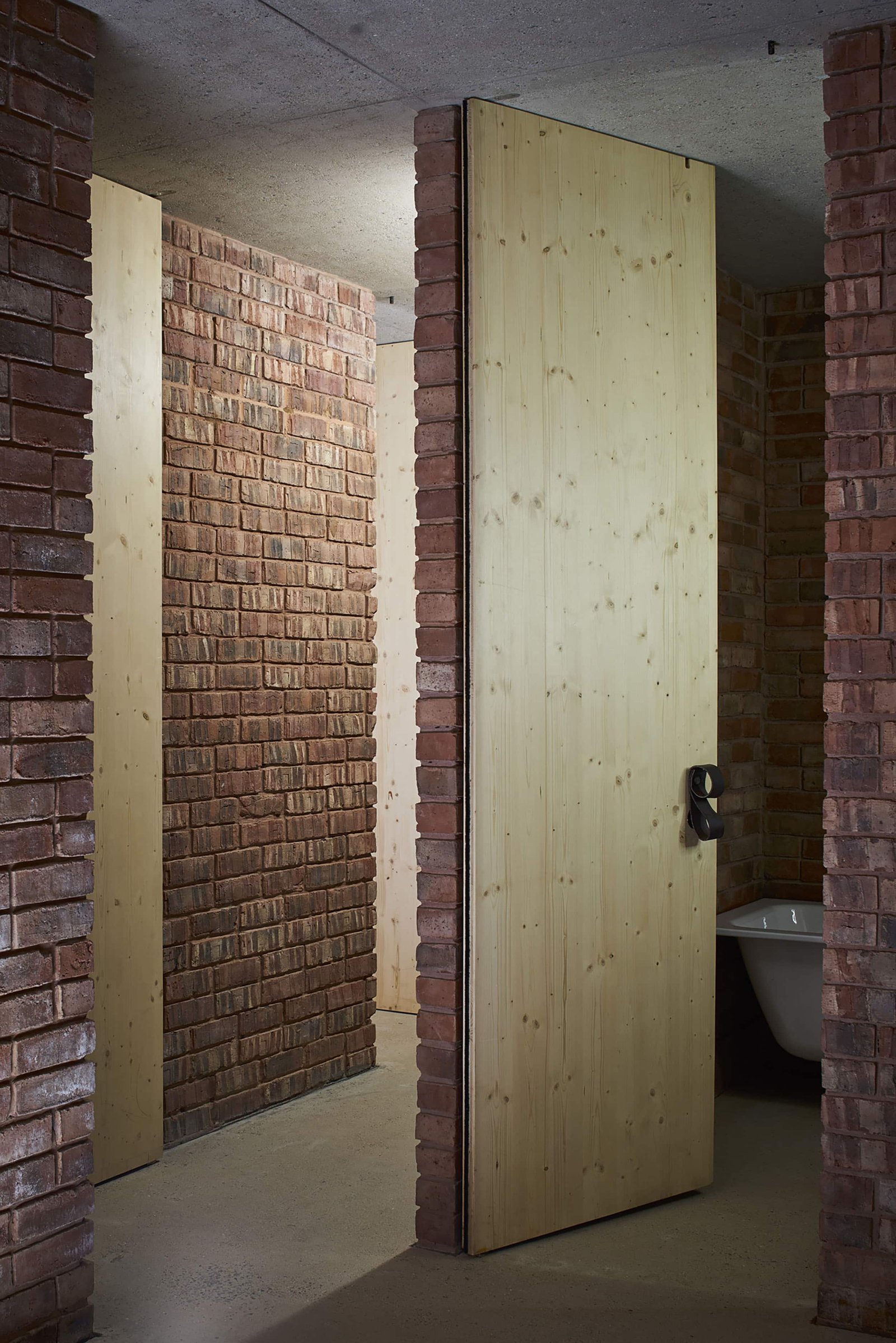 Occuper un logement en sous-sol est rarement quelque chose d’heureux. Les anglais sont plus habitués que nous à ce type d’exercice, l’agence Groupwork + Taha Amin nous le prouve avec ce projet. Le premier logement occupe l’ensemble du sous-sol et bénéficie d’une chambre avec commodité au RDC de l’immeuble où l’entrée est organisée. Ce logement est le seul qui revêt un parement intérieur en brique. En effet, pour des questions techniques, seulement de la maçonnerie pouvait être employée à ce niveau. De plus, le travail du sous-sol permet de mieux contenir la différence de niveau entre la rue et le jardin.