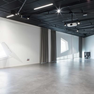 À l’intérieur de la salle de spectacle, les architectes ont opté pour une atmosphère intime en revêtant de noir les parois. Les sièges rouges viennent colorer l’espace, les premiers rangs sont rétractables.