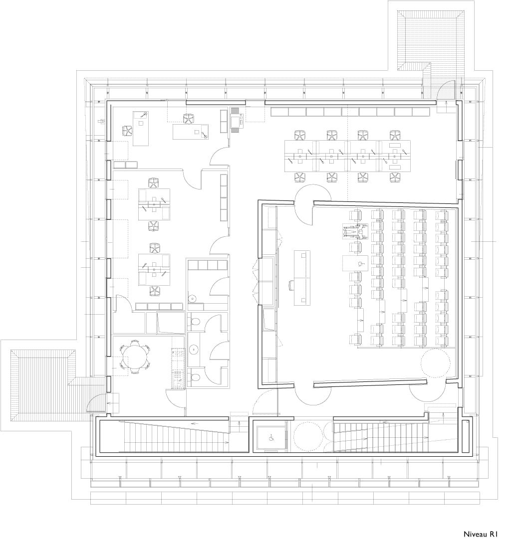 Du point de vue thermique, le bâtiment BBC affiche un Cep inférieur de 59,6 % par rapport à la référence. La température est régulée à travers un échangeur sur nappes, d’une vetillation double-flux, le chauffage urbain et des panneaux photovoltaïques alimentent les besoin énergétiques. Le bâtiment s’abstient de climatisation.