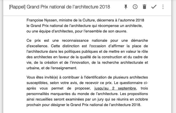 Récemment, la rédaction d’Actuarchi a reçu un mail du Ministère de la Culture nous invitant à donner 3 noms d’architectes (ou d’agences) qui ont marqué l’architecture. Plutôt que de donner trois noms d’architectes que nous apprécions, nous avons préféré laisser la parole à nos lecteurs pour nous suggérer ces trois architectes qui seraient susceptibles de recevoir le Grand Prix national de l’architecture 2018.