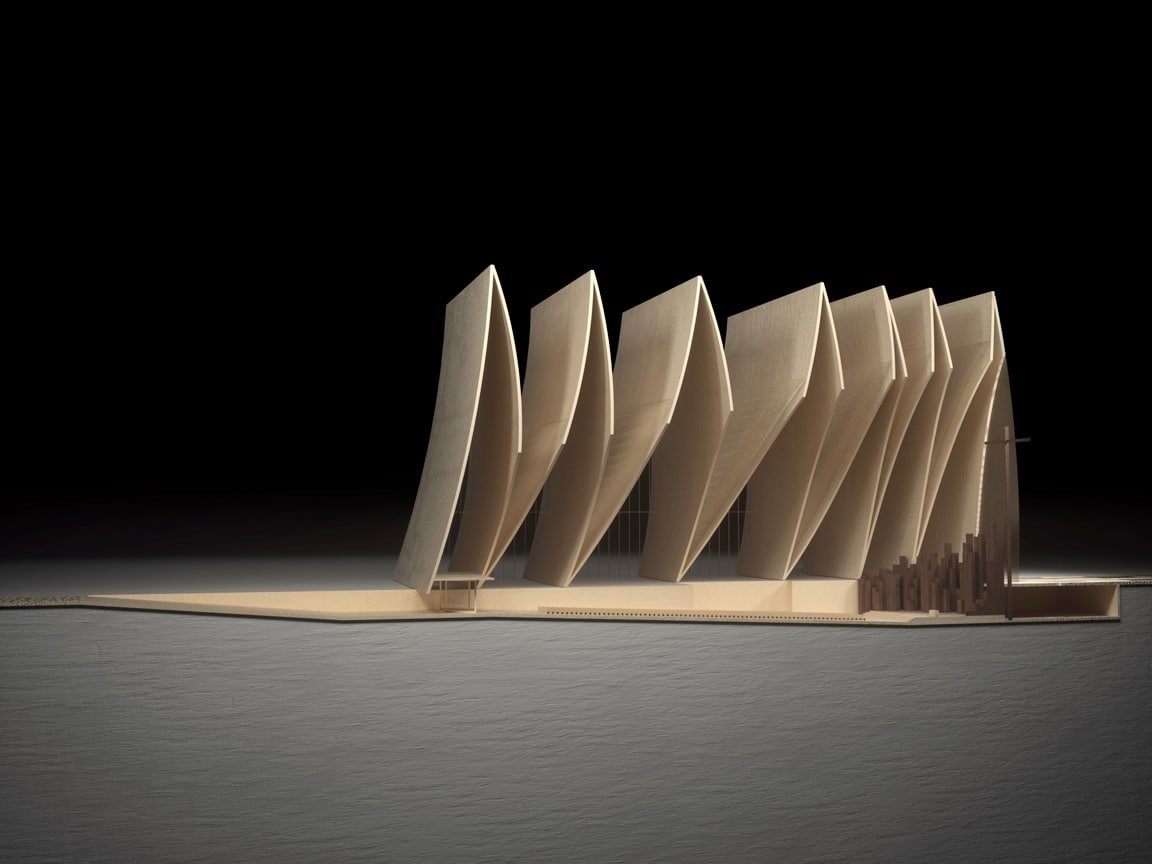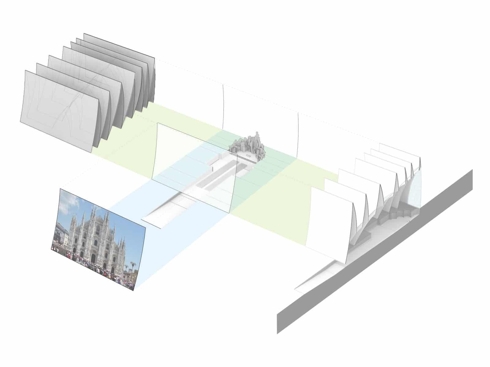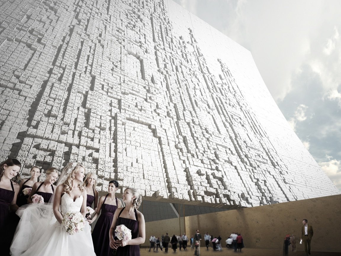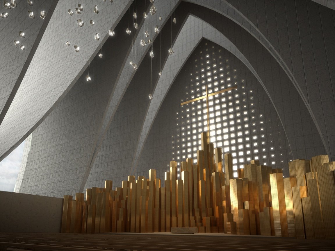 Actuarchi a le plaisir de vous dévoiler la proposition de l’agence états-unienne Axis Mundi pour la nouvelle cathédrale de Strasbourg. Cette agence qui a su se faire connaître avec sa proposition brutale pour le musée Whitney, a été invitée à soumettre un projet pour la ville. L’ensemble repose sur une croix latine immergée, il est constitué d’une série d’arches. La façade orientale est sculptée d’une cathédrale gothique admirant le levé du soleil, ainsi au cours de la journée, cette gravure disparaitra.