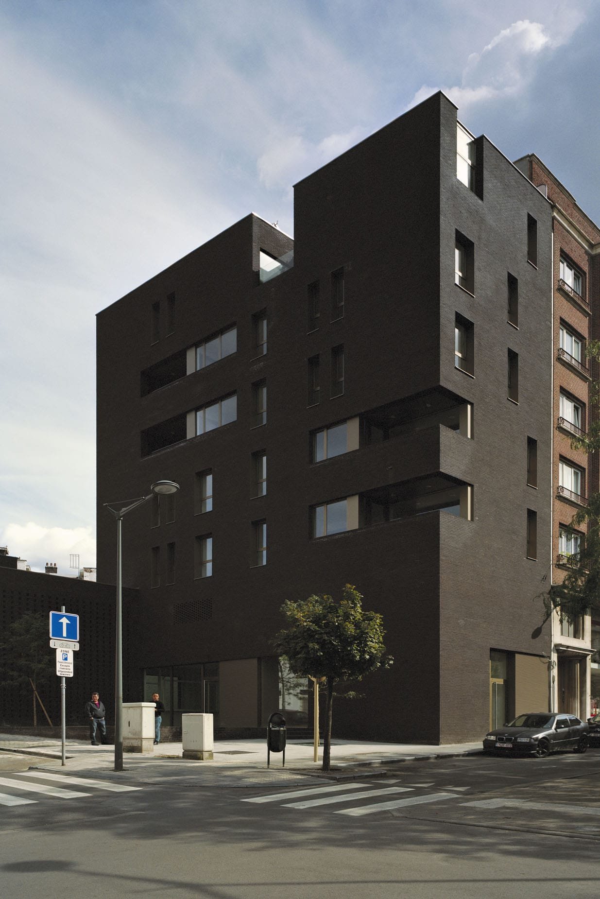 Commissariat avec logement sociaux, en lisant ce programme, ce projet m’a tout de suite attiré. S’adosser à un pignon d’immeuble R+6 à un angle de rue, il n’en a pas fallu plus pour me convaincre de vous le présenter. Ce lieu ; appelé Koban en Belgique, n’a rien de répressif comme nous l’explique Olivier Dubucq, architecte chez Matador. L’objectif de la municipalité est de concevoir un lieu de médiation avec ses riverains. Cette opération est l’œuvre des architectes belges Matador, achevée en décembre dernier, elle se situe à Schaerbeek en périphérie de Bruxelles. Les architectes étaient opposés en phase concours à Dewil Architectes, Archi+i, Atelier De Visscher & Vincentelli, 3A architectes & Plateforme.