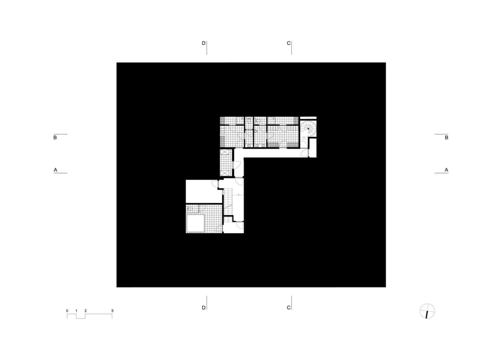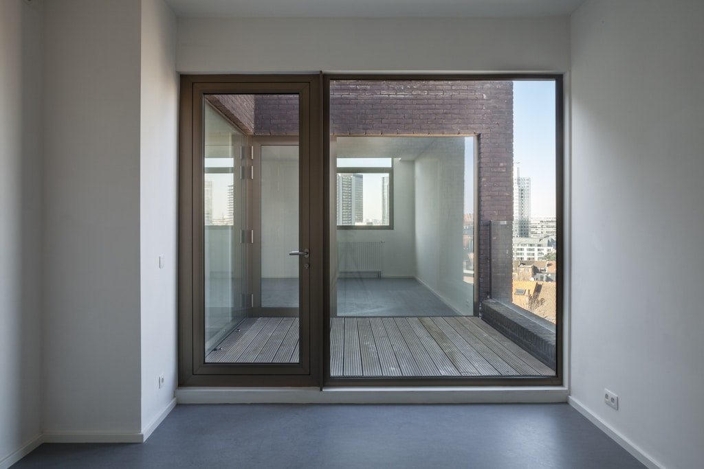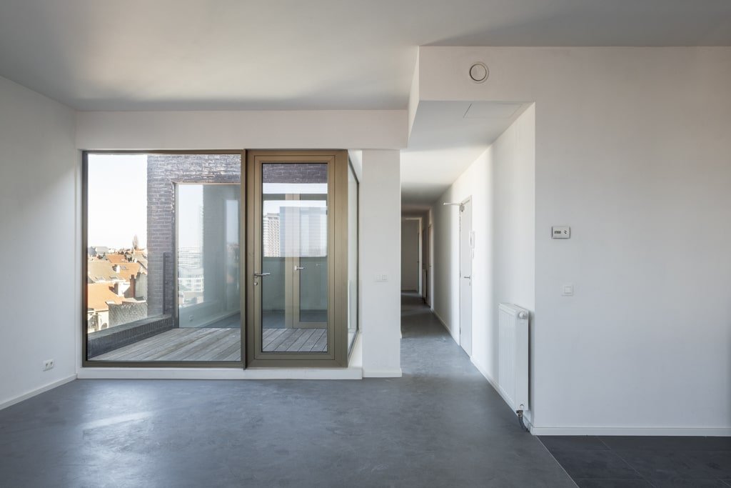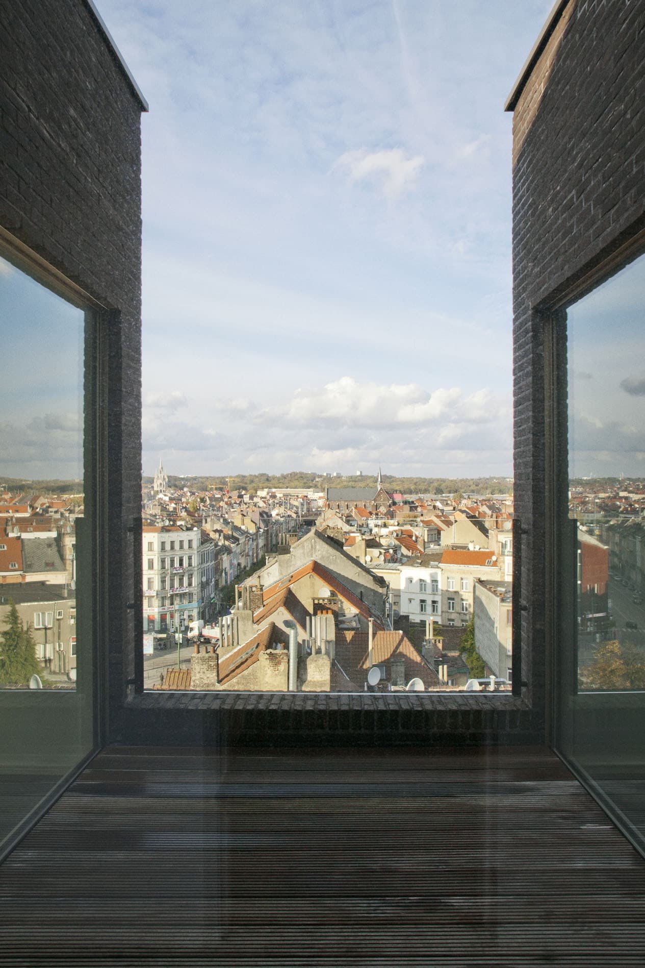 Olivier Dubucq : La topographie du terrain mais surtout sa position dans la ville nous ont immédiatement amené à établir cette typologie : habiller un grand mitoyen en attente tout en faisant face à la place Liedts et finalement à une partie extrêmement large du paysage au nord de Bruxelles, d’est en ouest, et même au-delà …