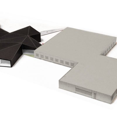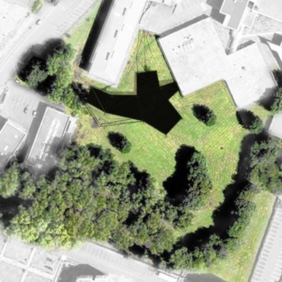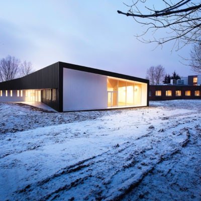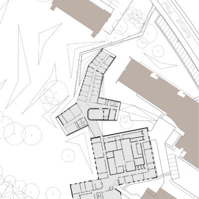Au niveau de l’intégration, plutôt que tenter toute urbanité d’îlot, les architectes ont choisi de respecter l’intégrité initiale du projet d’aménagement du quartier universitaire en composant un pavillon indépendant intégré au paysage ouvert du campus. Le projet est composé en étoile dont une des branches vient relier un projet typique des années 1980, réalisé comme une galette de brique aux façades indifférenciées.