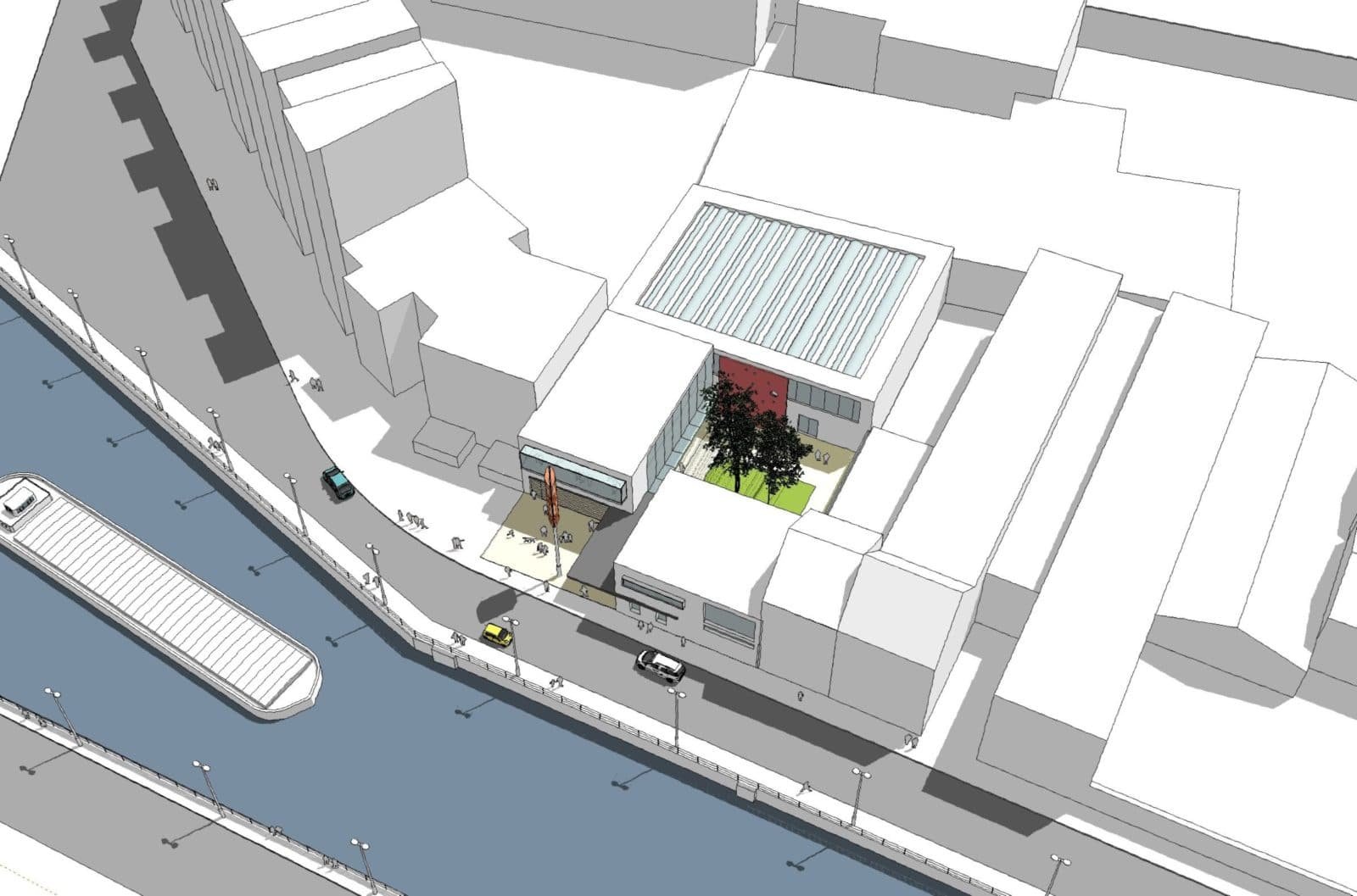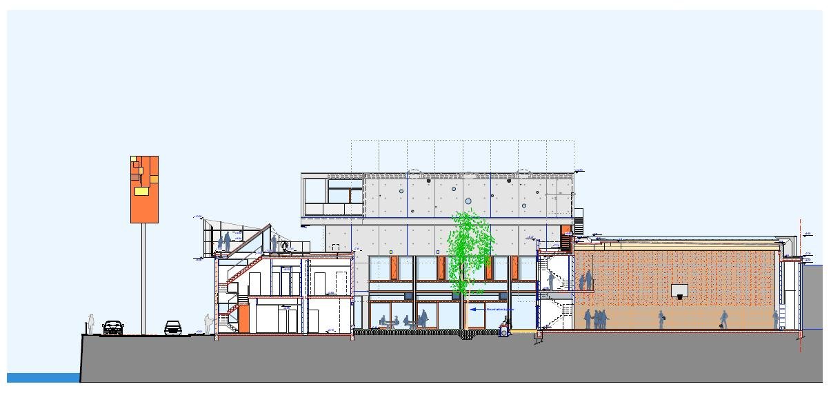 Une fresque, montée sur un mât, sera réalisée en collaboration avec les enfants du quartier. Le mât se trouve près du canal afin d’assurer la visibilité du complexe depuis les environs.