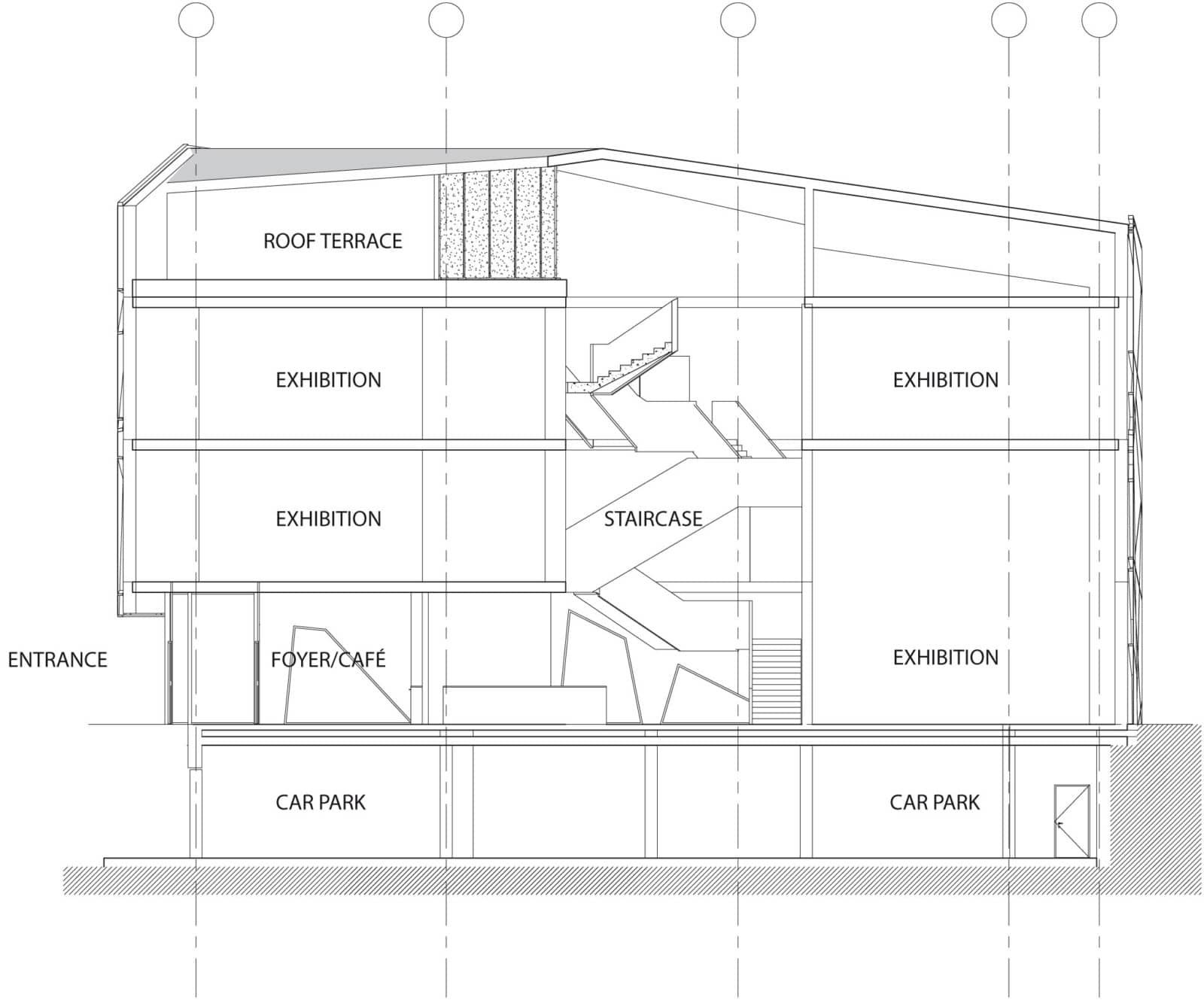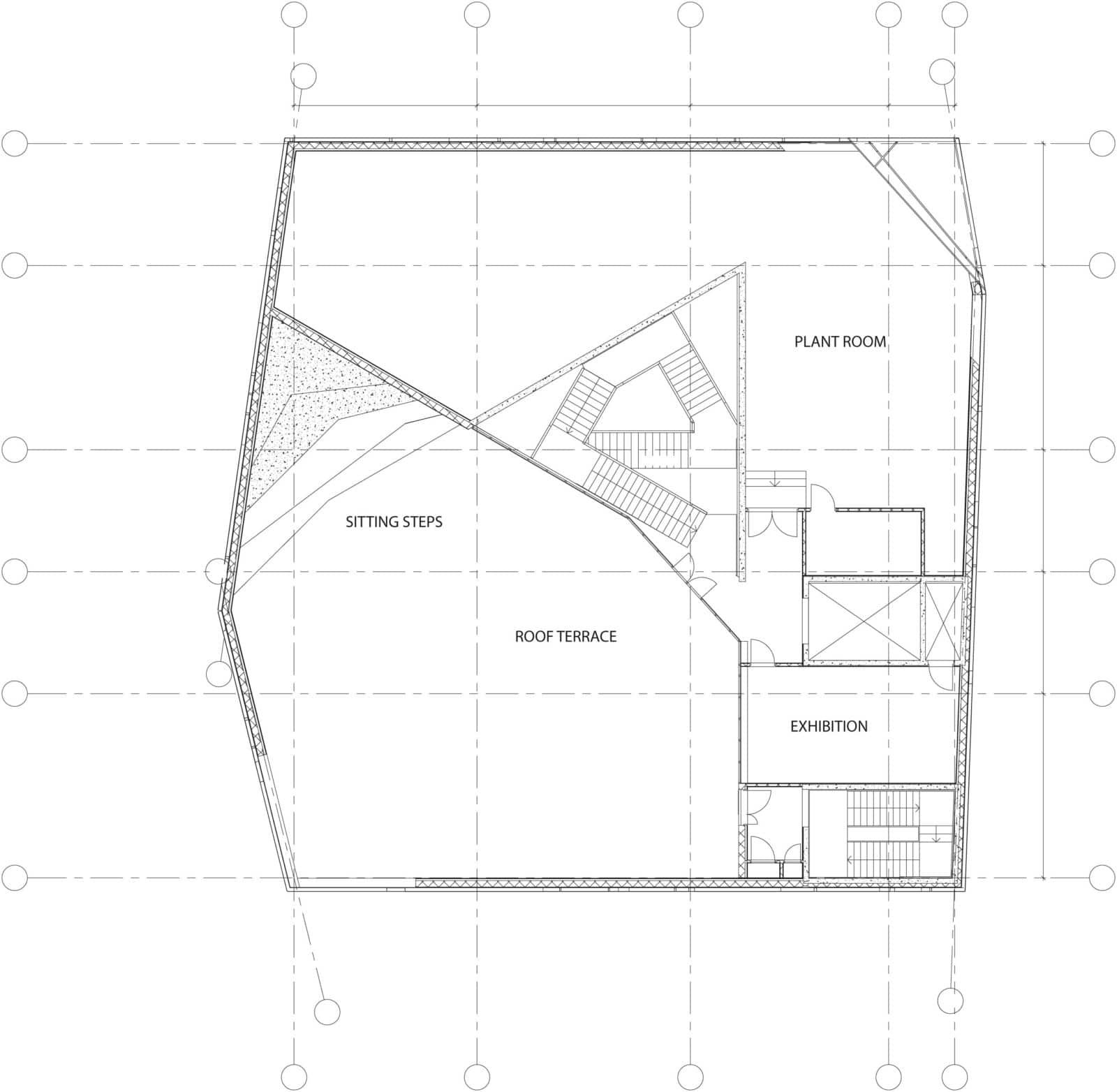 La visite s’effectue de manière ascendante, les quatre niveaux d’expositions sont desservis par un escalier central au plan triangulaire. La toiture est accessible au public, elle offre une vue sur la montagne.