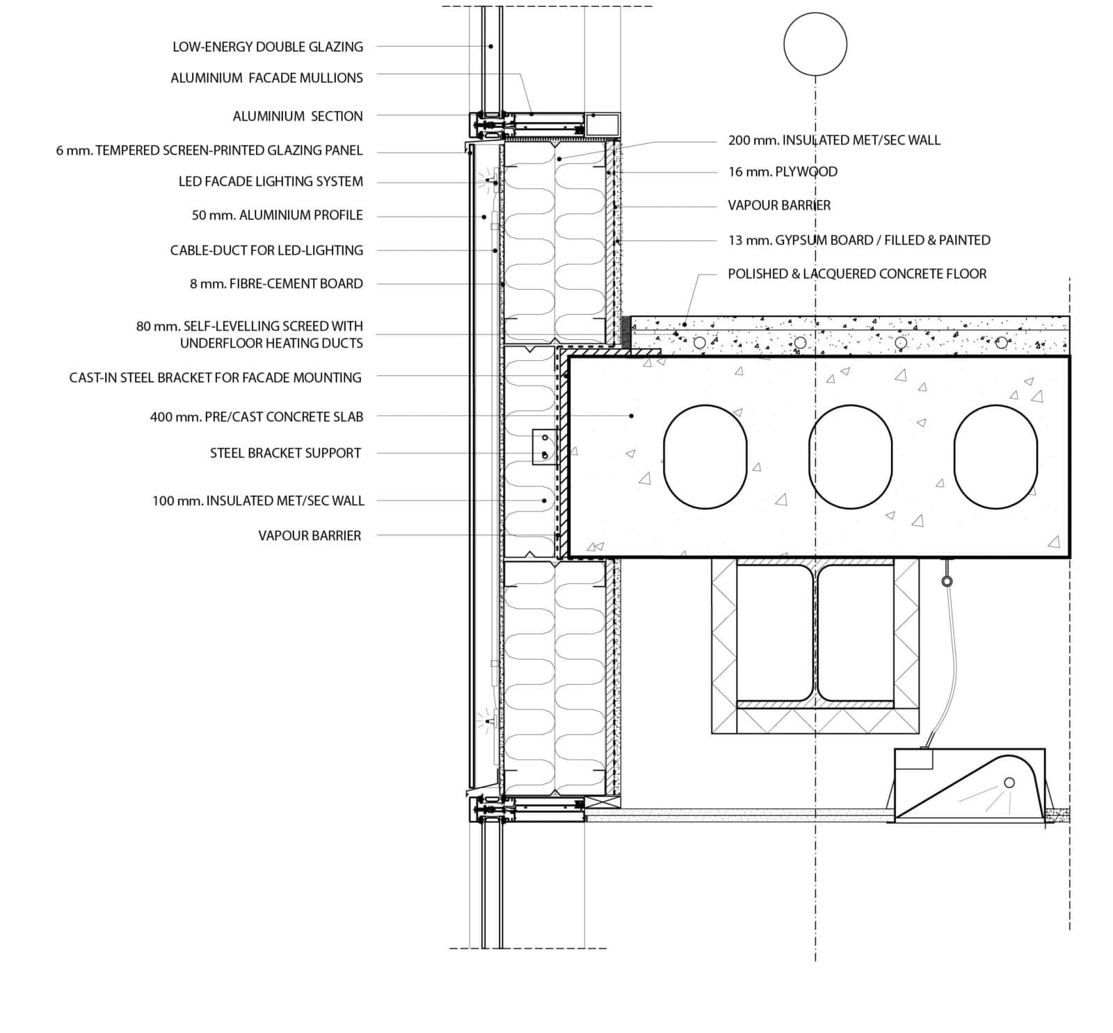 L’originalité du site a conduit les architectes à concevoir le musée comme un bloc cristallin détaché du glacier et ayant glissé jusqu’à la ville. La façade est marquée par des failles créées par le contact avec la roche. La nuit, ces lignes franches s’illuminent et le démarque des bâtiments avoisinant.